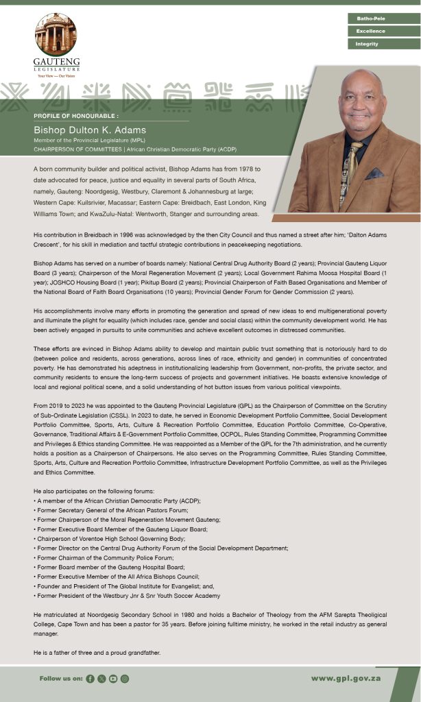 CHAIRPERSON OF COMMITTEES | African Christian Democratic Party (ACDP)