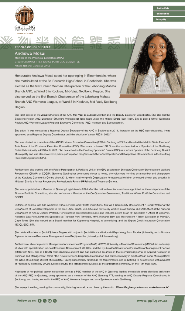 DEPUTY CHAIRPERSON OF COMMITTEES | African National Congress (ANC)