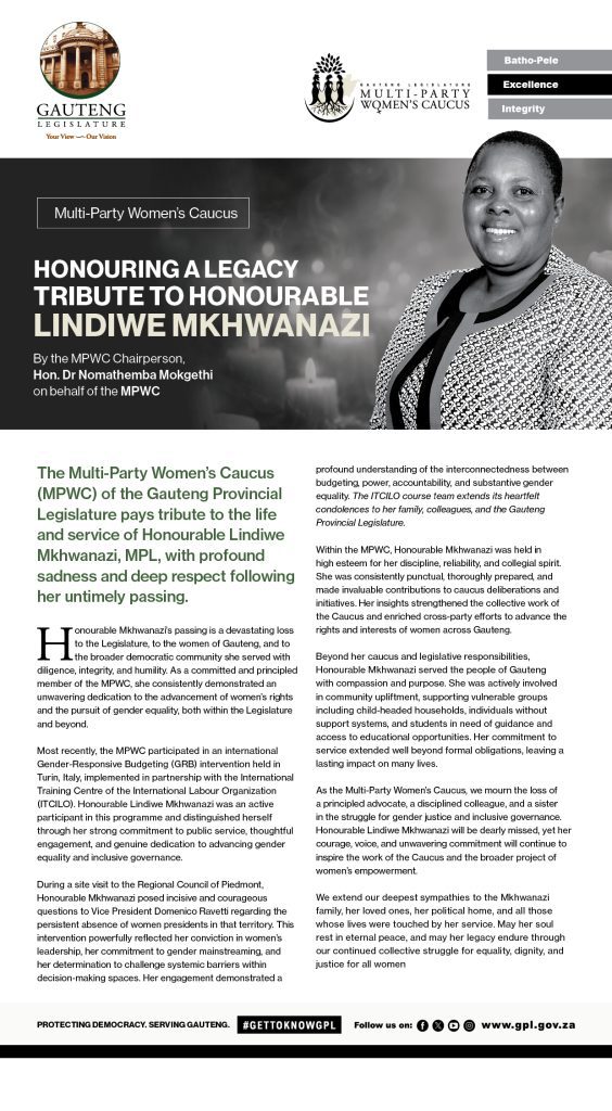 TRIBUTE TO HONOURABLE LINDIWE MKHWANAZI